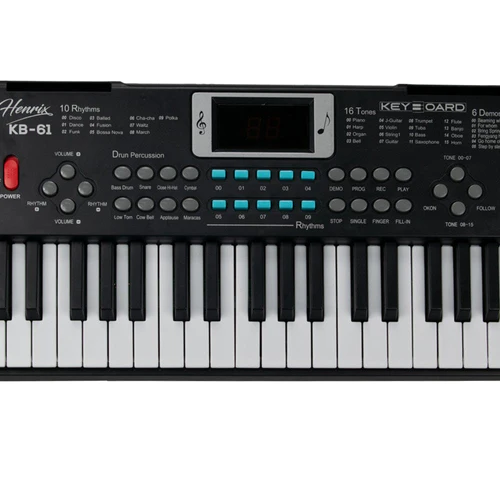 The KB-61 Portable Keyboard is a 61 key keyboard that features mini keys, perfect for kids who are ready to take the next step in their musical journey. The smaller keys are perfect for small hands and fingers. This keyboard is an ideal introduction to learning and a recording function that lets kids play back their favorite tunes!